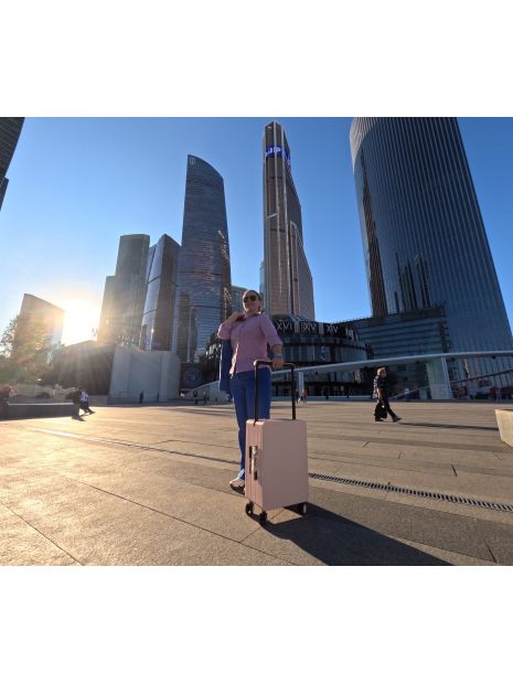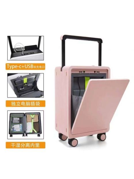 Чемодан 20" минимализм премиум USB передний карман розовый - G015