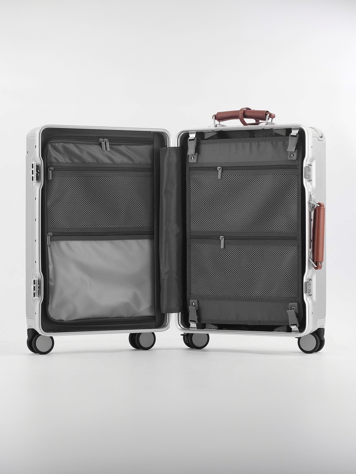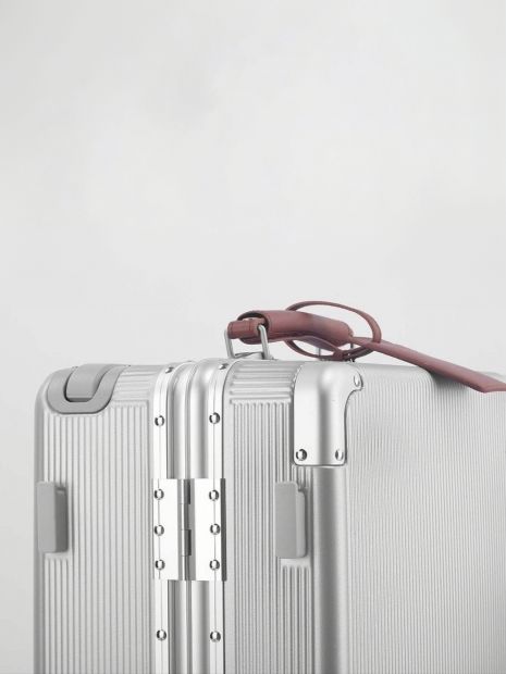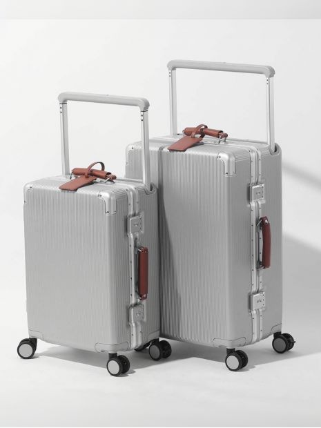 Чемодан серебристый 25" широкая ручка на клипсах, G849