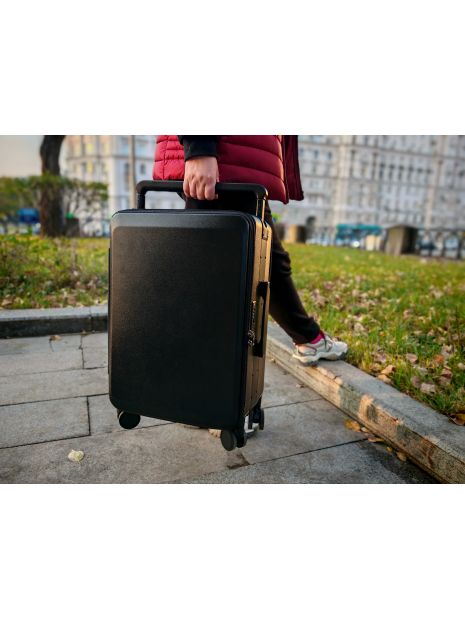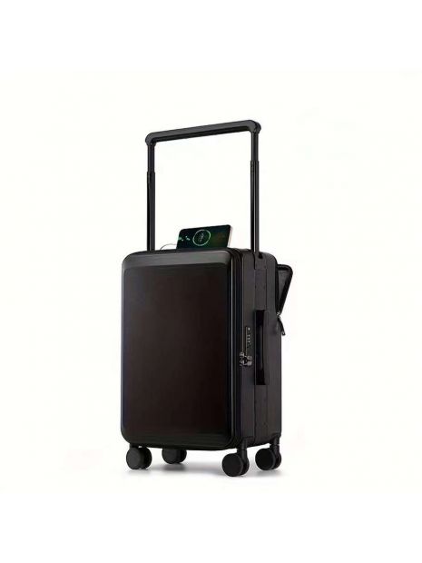 Чемодан 25" чёрный переднее открывание и карман ребристый - GP06