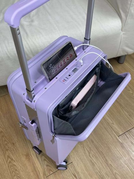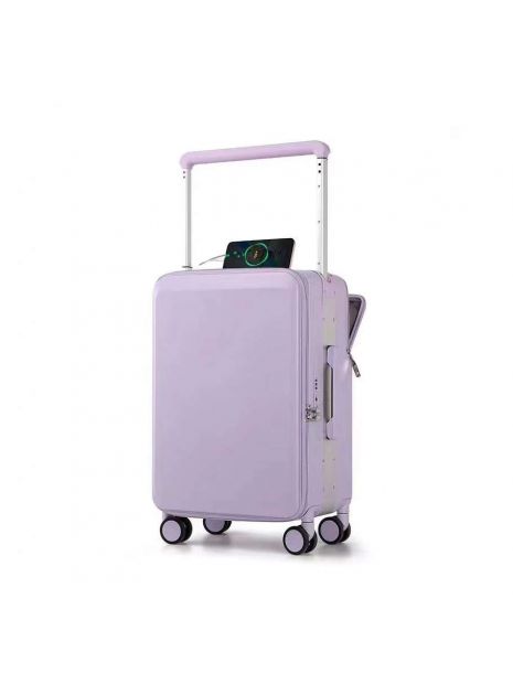 Чемодан 25" лавандовый переднее открывание и карман гладкий - GP06