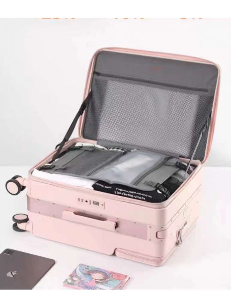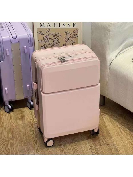 Чемодан 25" розовый переднее открывание и карман ребристый - GP06