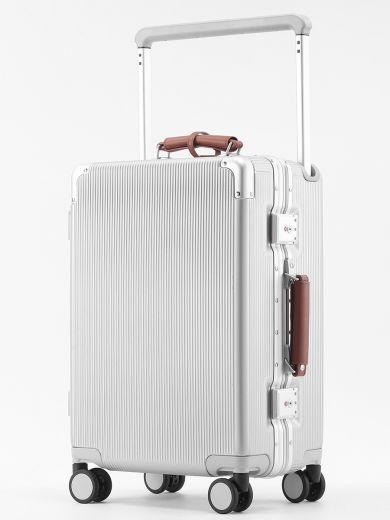 Чемодан серебристый 25" широкая ручка на клипсах, G849